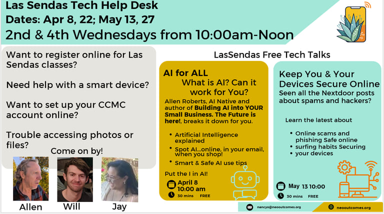 Upcoming Help Desk and Free Tech Talks